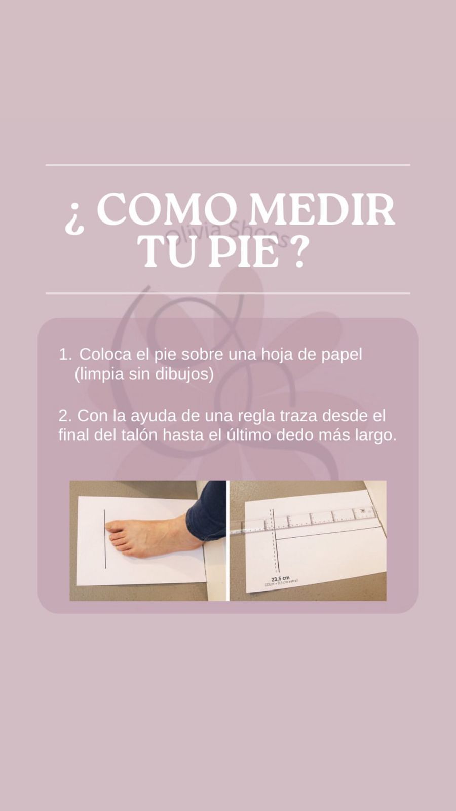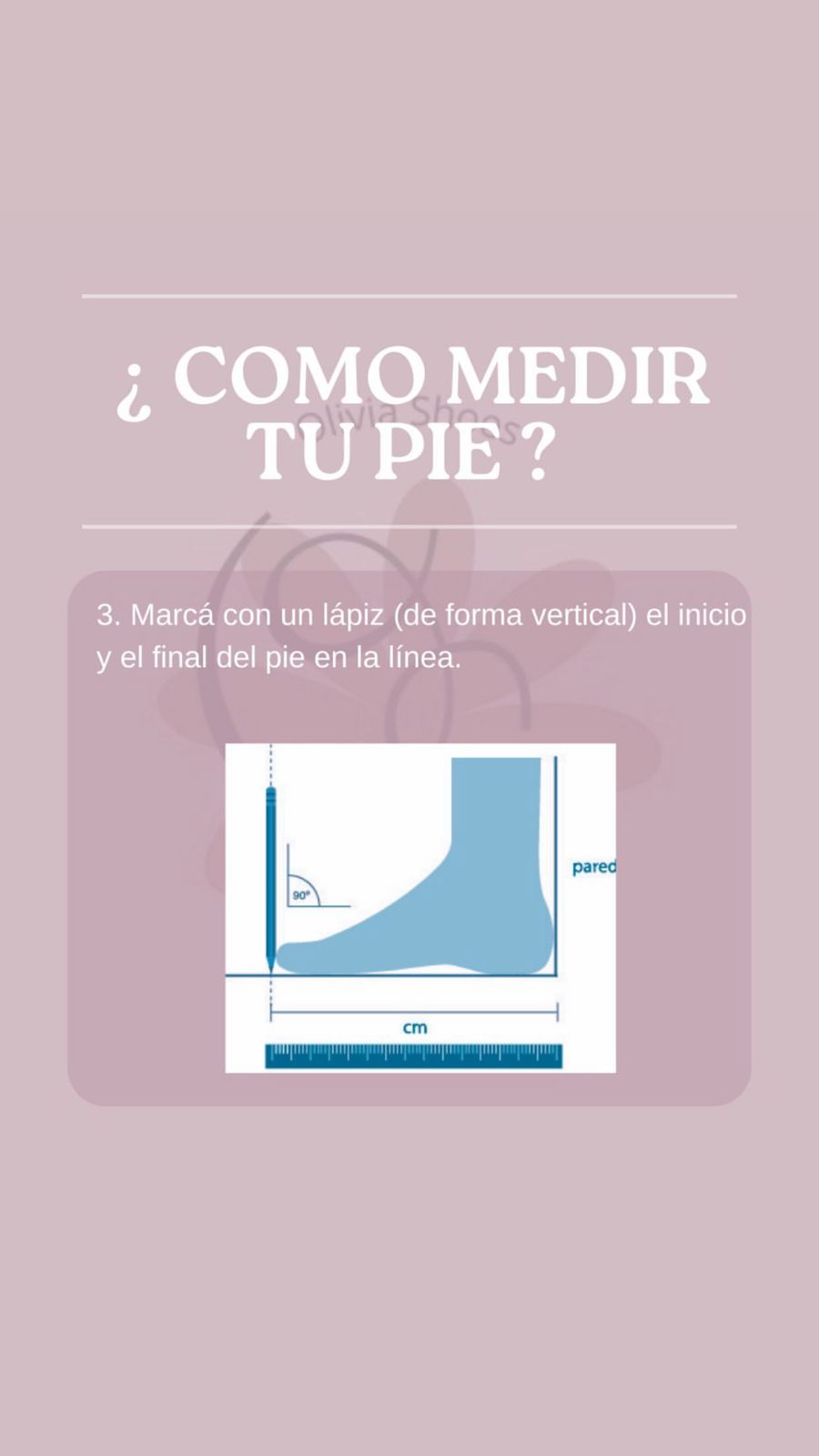 Medí tu pie completo desde el talón hasta el último dedo para encontrar tu talle correcto.