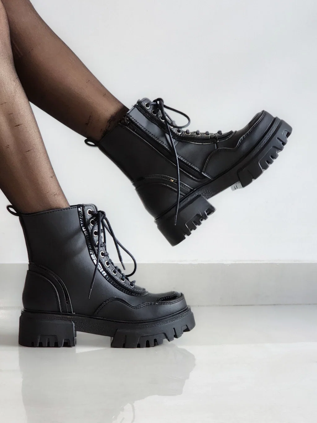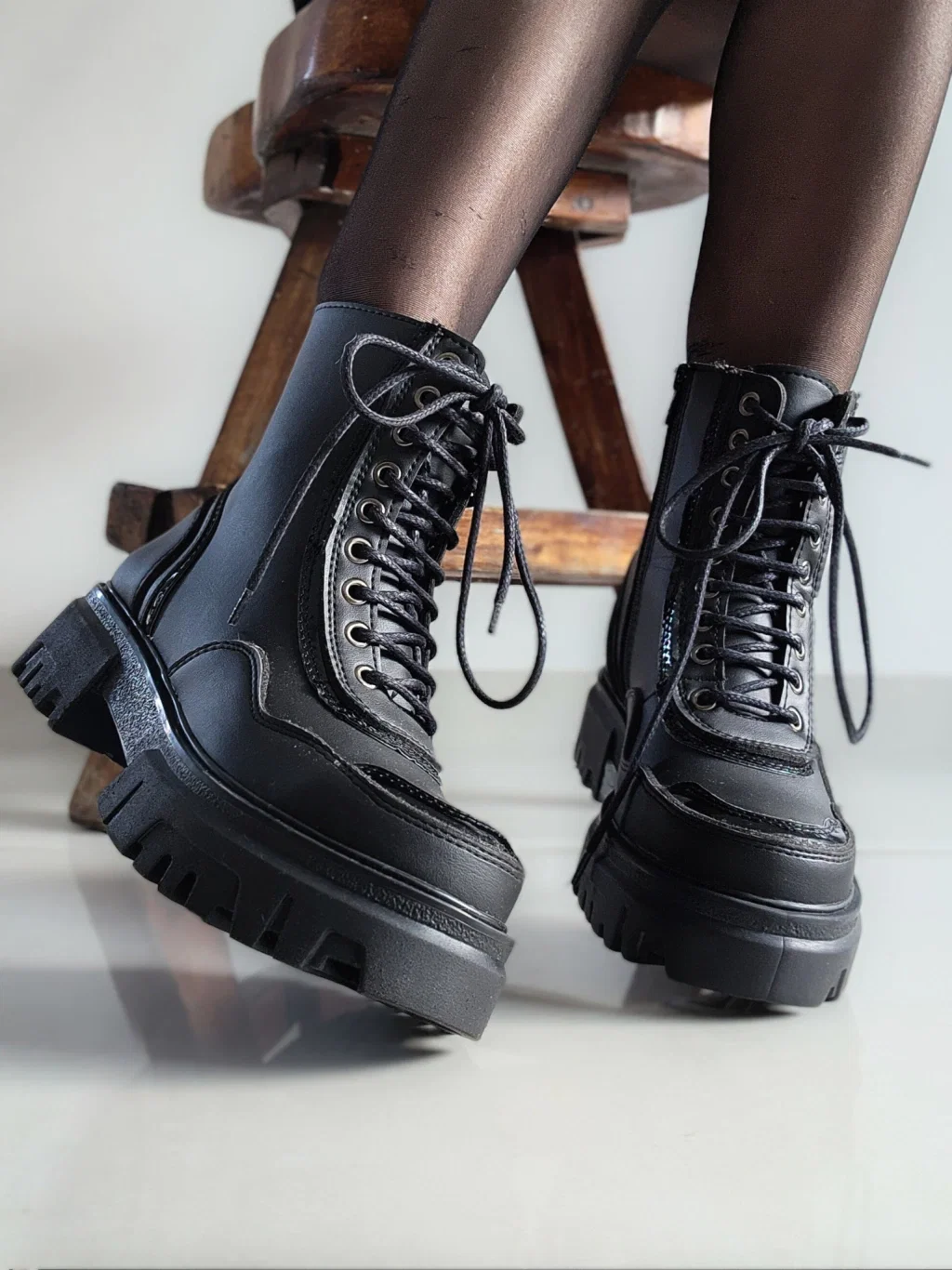 Capellada: P.U. (cuero vegano) Premium combinada con detalles en charol negro.
