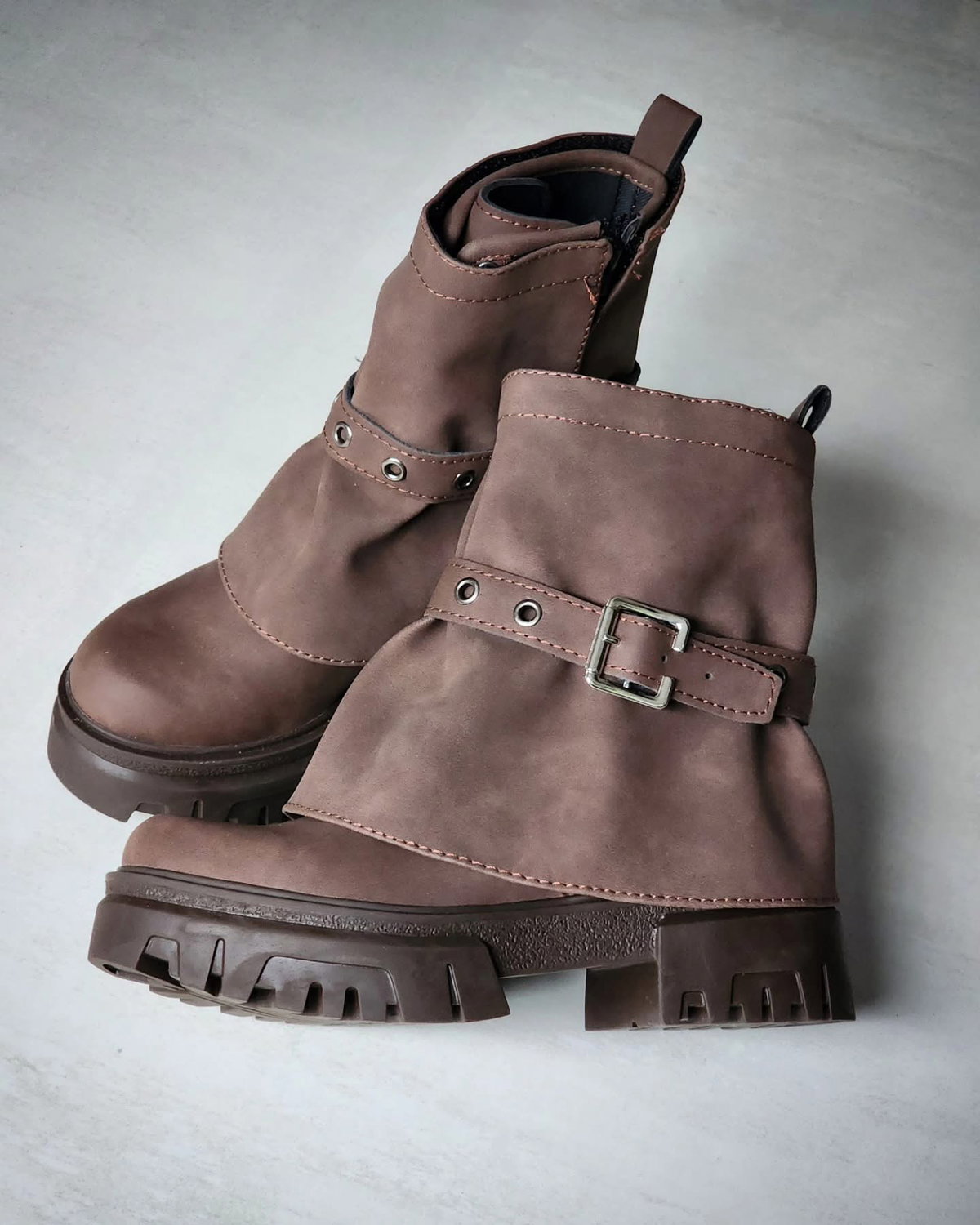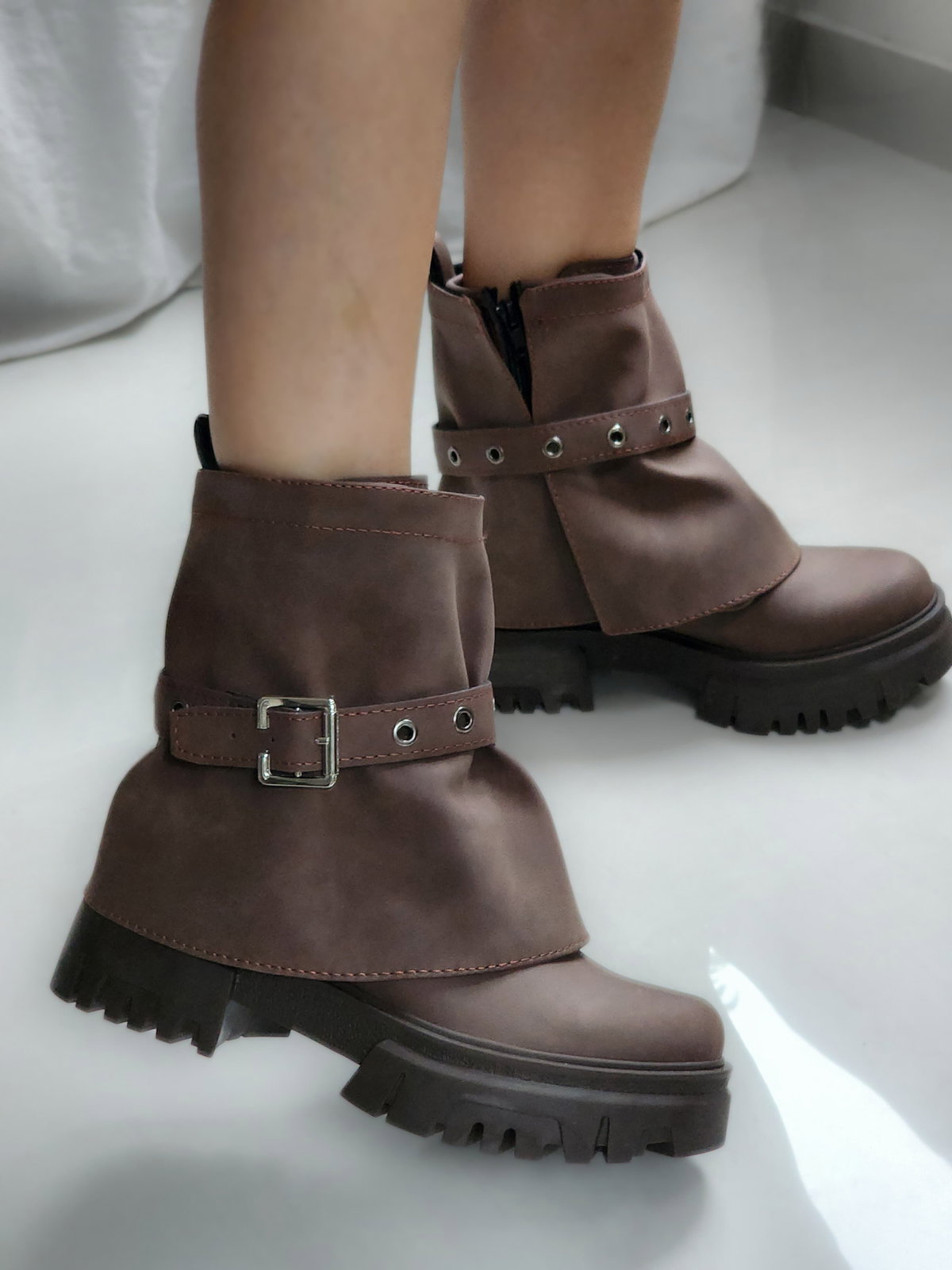 Descripción: Bota corta de diseño urbano, en tono marrón chocolate, arena y negro 🔥